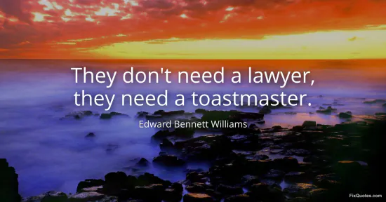 Williams, Edward Bennett. (2026, January 16). They don't need a lawyer, they need a toastmaster. FixQuotes. https://fixquotes.com/quotes/they-dont-need-a-lawyer-they-need-a-toastmaster-128851/