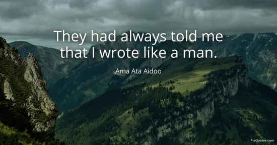 Aidoo, Ama Ata. (2026, January 16). They had always told me that I wrote like a man. FixQuotes. https://fixquotes.com/quotes/they-had-always-told-me-that-i-wrote-like-a-man-118654/