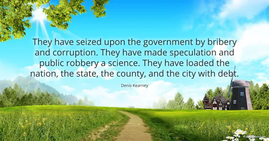 Kearney, Denis. (2026, January 17). They have seized upon the government by bribery and corruption. They have made speculation and public robbery a science. They have loaded the nation, the state, the county, and the city with debt. FixQuotes. https://fixquotes.com/quotes/they-have-seized-upon-the-government-by-bribery-81587/