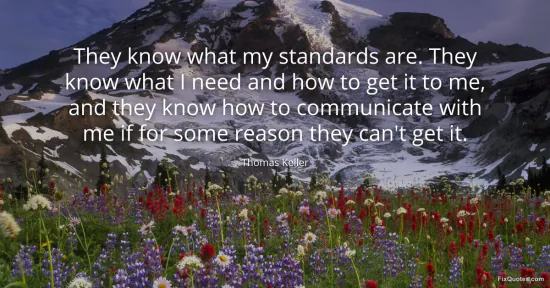 Keller, Thomas. (2026, January 18). They know what my standards are. They know what I need and how to get it to me, and they know how to communicate with me if for some reason they can't get it. FixQuotes. https://fixquotes.com/quotes/they-know-what-my-standards-are-they-know-what-i-13025/