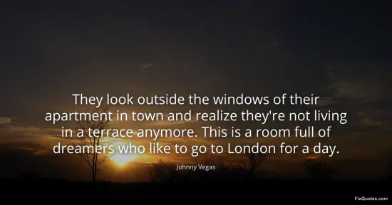 Vegas, Johnny. (2026, January 17). They look outside the windows of their apartment in town and realize they're not living in a terrace anymore. This is a room full of dreamers who like to go to London for a day. FixQuotes. https://fixquotes.com/quotes/they-look-outside-the-windows-of-their-apartment-55186/