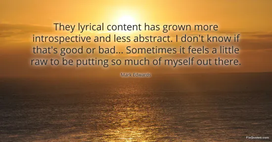 Edwards, Mark. "They lyrical content has grown more introspective and less abstract. I don't know if that's good or bad... Sometimes it feels a little raw to be putting so much of myself out there." FixQuotes. January 16, 2026. https://fixquotes.com/quotes/they-lyrical-content-has-grown-more-introspective-125208/.
