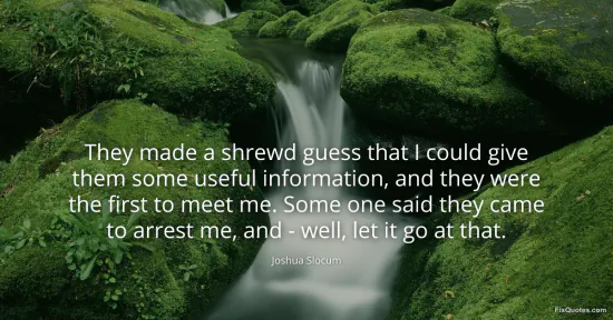 Slocum, Joshua. "They made a shrewd guess that I could give them some useful information, and they were the first to meet me. Some one said they came to arrest me, and - well, let it go at that." FixQuotes. January 15, 2026. https://fixquotes.com/quotes/they-made-a-shrewd-guess-that-i-could-give-them-152385/.