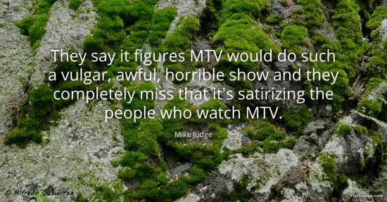 Judge, Mike. "They say it figures MTV would do such a vulgar, awful, horrible show and they completely miss that it's satirizing the people who watch MTV." FixQuotes. January 16, 2026. https://fixquotes.com/quotes/they-say-it-figures-mtv-would-do-such-a-vulgar-127780/.