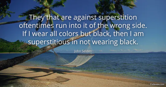 Selden, John. "They that are against superstition oftentimes run into it of the wrong side. If I wear all colors but black, then I am superstitious in not wearing black." FixQuotes. January 17, 2026. https://fixquotes.com/quotes/they-that-are-against-superstition-oftentimes-run-27899/.