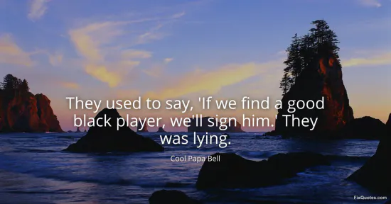Bell, Cool Papa. "They used to say, 'If we find a good black player, we'll sign him.' They was lying." FixQuotes. January 15, 2026. https://fixquotes.com/quotes/they-used-to-say-if-we-find-a-good-black-player-121573/.