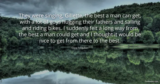 Ferguson, Craig. "They were singing, Gillette, the best a man can get, with a lot of guys hugging their fathers and sailing and riding bikes. I suddenly felt a long way from the best a man could get and I thought it would be nice to get from there to the best." FixQuotes. January 16, 2026. https://fixquotes.com/quotes/they-were-singing-gillette-the-best-a-man-can-get-119570/.