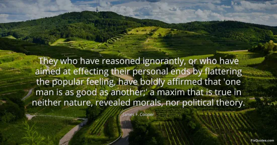 Cooper, James F. (2026, January 16). They who have reasoned ignorantly, or who have aimed at effecting their personal ends by flattering the popular feeling, have boldly affirmed that 'one man is as good as another;' a maxim that is true in neither nature, revealed morals, nor political theory. FixQuotes. https://fixquotes.com/quotes/they-who-have-reasoned-ignorantly-or-who-have-85112/