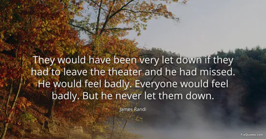 Randi, James. (2026, January 15). They would have been very let down if they had to leave the theater and he had missed. He would feel badly. Everyone would feel badly. But he never let them down. FixQuotes. https://fixquotes.com/quotes/they-would-have-been-very-let-down-if-they-had-to-170866/
