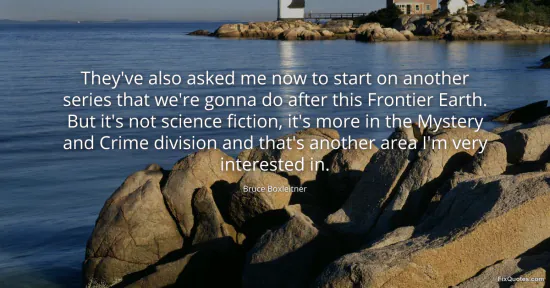 Boxleitner, Bruce. (2026, January 15). They've also asked me now to start on another series that we're gonna do after this Frontier Earth. But it's not science fiction, it's more in the Mystery and Crime division and that's another area I'm very interested in. FixQuotes. https://fixquotes.com/quotes/theyve-also-asked-me-now-to-start-on-another-41356/