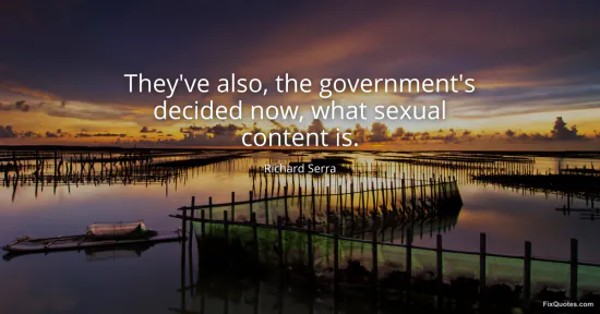Serra, Richard. (2026, January 16). They've also, the government's decided now, what sexual content is. FixQuotes. https://fixquotes.com/quotes/theyve-also-the-governments-decided-now-what-134545/