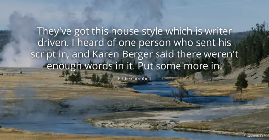 Campbell, Eddie. "They've got this house style which is writer driven. I heard of one person who sent his script in, and Karen Berger said there weren't enough words in it. Put some more in." FixQuotes. January 15, 2026. https://fixquotes.com/quotes/theyve-got-this-house-style-which-is-writer-140862/.
