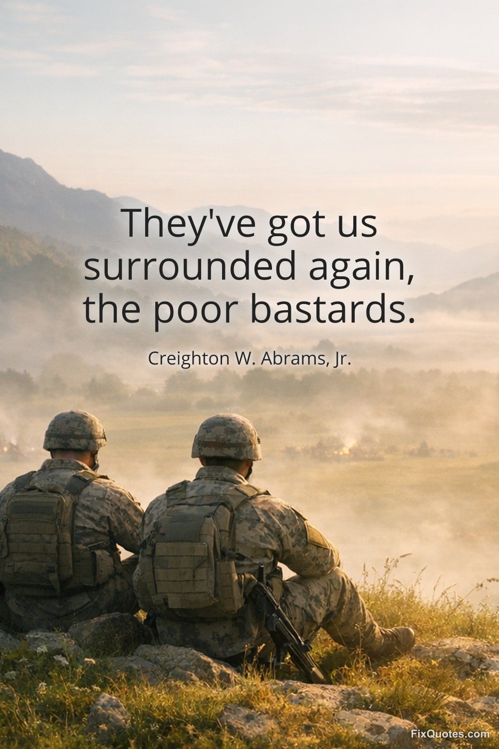 Jr., Creighton W. Abrams,. (2026, January 18). They've got us surrounded again, the poor bastards. FixQuotes. https://fixquotes.com/quotes/theyve-got-us-surrounded-again-the-poor-bastards-135017/