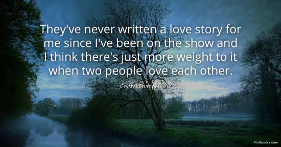 Chappell, Crystal. (2026, January 16). They've never written a love story for me since I've been on the show and I think there's just more weight to it when two people love each other. FixQuotes. https://fixquotes.com/quotes/theyve-never-written-a-love-story-for-me-since-123345/