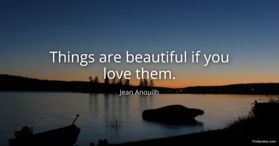 Beauty gets demoted from a property to a consequence. Anouilh’s line doesn’t flatter the world; it indicts the viewer. “Things are beautiful if you love them” turns aesthetics into a moral and emotional decision, which is precisely the kind of trap his theater likes to spring: you don’t get to hide behind taste, cynicism, or “objectivity.” If you find nothing beautiful, it may be because you’ve refused the vulnerability that love requires.
