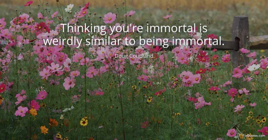 Coupland, Doug. "Thinking you're immortal is weirdly similar to being immortal." FixQuotes. January 17, 2026. https://fixquotes.com/quotes/thinking-youre-immortal-is-weirdly-similar-to-49910/.