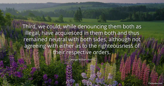The line is the sound of a statesman refusing the seduction of “neutrality” as a moral alibi. Norris sketches a tempting option: condemn two opposing actions as illegal, then quietly accept both anyway to keep diplomatic balance. It’s a neat rhetorical trap because it exposes how a government can launder complicity through procedure. You can file the protest, stamp the disapproval, and still cooperate in practice - all while claiming your hands are clean.