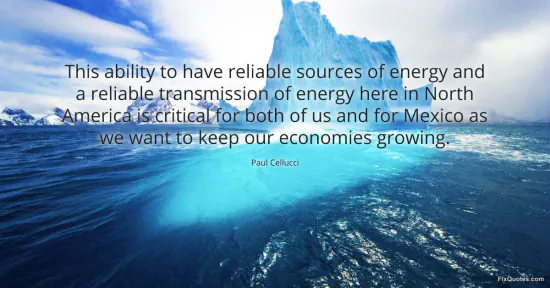 Cellucci, Paul. (2026, January 16). This ability to have reliable sources of energy and a reliable transmission of energy here in North America is critical for both of us and for Mexico as we want to keep our economies growing. FixQuotes. https://fixquotes.com/quotes/this-ability-to-have-reliable-sources-of-energy-86809/