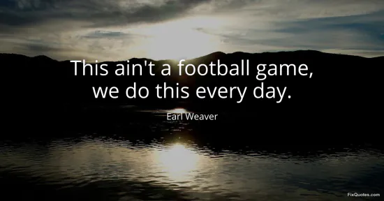 Weaver, Earl. "This ain't a football game, we do this every day." FixQuotes. January 15, 2026. https://fixquotes.com/quotes/this-aint-a-football-game-we-do-this-every-day-161247/.