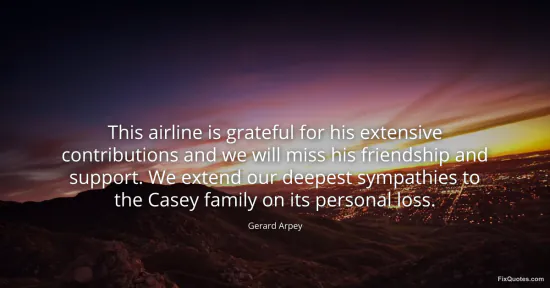 Arpey, Gerard. "This airline is grateful for his extensive contributions and we will miss his friendship and support. We extend our deepest sympathies to the Casey family on its personal loss." FixQuotes. January 16, 2026. https://fixquotes.com/quotes/this-airline-is-grateful-for-his-extensive-120557/.