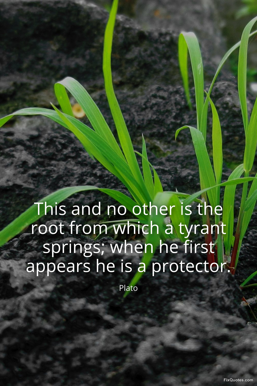 "This and no other is the root from which a tyrant springs; when he first appears he is a protector." FixQuotes, 17 Jan. 2026, https://fixquotes.com/quotes/this-and-no-other-is-the-root-from-which-a-tyrant-29323/. Accessed 22 Mar. 2026.