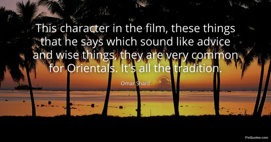 Sharif, Omar. "This character in the film, these things that he says which sound like advice and wise things, they are very common for Orientals. It's all the tradition." FixQuotes. January 16, 2026. https://fixquotes.com/quotes/this-character-in-the-film-these-things-that-he-100513/.