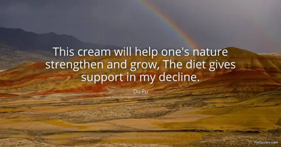 Fu, Du. (2026, January 17). This cream will help one's nature strengthen and grow, The diet gives support in my decline. FixQuotes. https://fixquotes.com/quotes/this-cream-will-help-ones-nature-strengthen-and-46222/