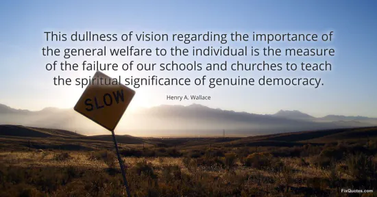 Wallace, Henry A. "This dullness of vision regarding the importance of the general welfare to the individual is the measure of the failure of our schools and churches to teach the spiritual significance of genuine democracy." FixQuotes. January 18, 2026. https://fixquotes.com/quotes/this-dullness-of-vision-regarding-the-importance-17566/.