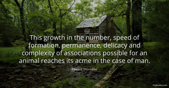 Thorndike, Edward. (2026, January 15). This growth in the number, speed of formation, permanence, delicacy and complexity of associations possible for an animal reaches its acme in the case of man. FixQuotes. https://fixquotes.com/quotes/this-growth-in-the-number-speed-of-formation-167377/