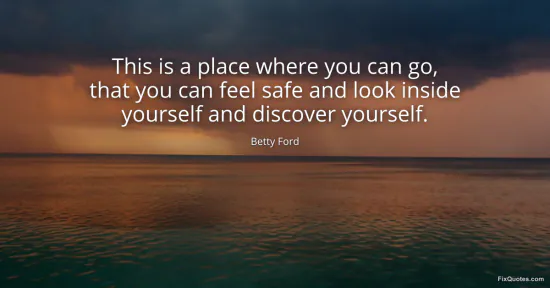 Ford, Betty. "This is a place where you can go, that you can feel safe and look inside yourself and discover yourself." FixQuotes. January 18, 2026. https://fixquotes.com/quotes/this-is-a-place-where-you-can-go-that-you-can-23346/.