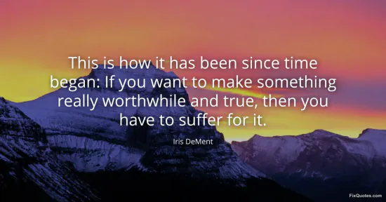 "This is how it has been since time began: If you want to make something really worthwhile and true, then you have to suffer for it"