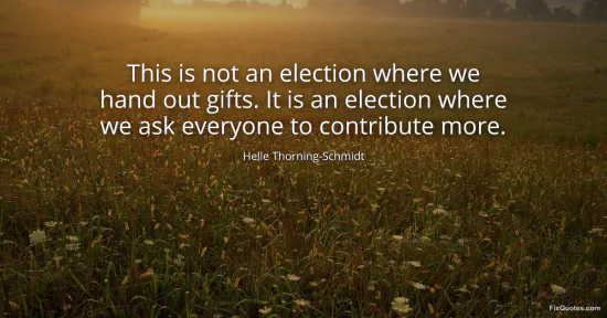 Thorning-Schmidt, Helle. "This is not an election where we hand out gifts. It is an election where we ask everyone to contribute more." FixQuotes. January 15, 2026. https://fixquotes.com/quotes/this-is-not-an-election-where-we-hand-out-gifts-144116/.