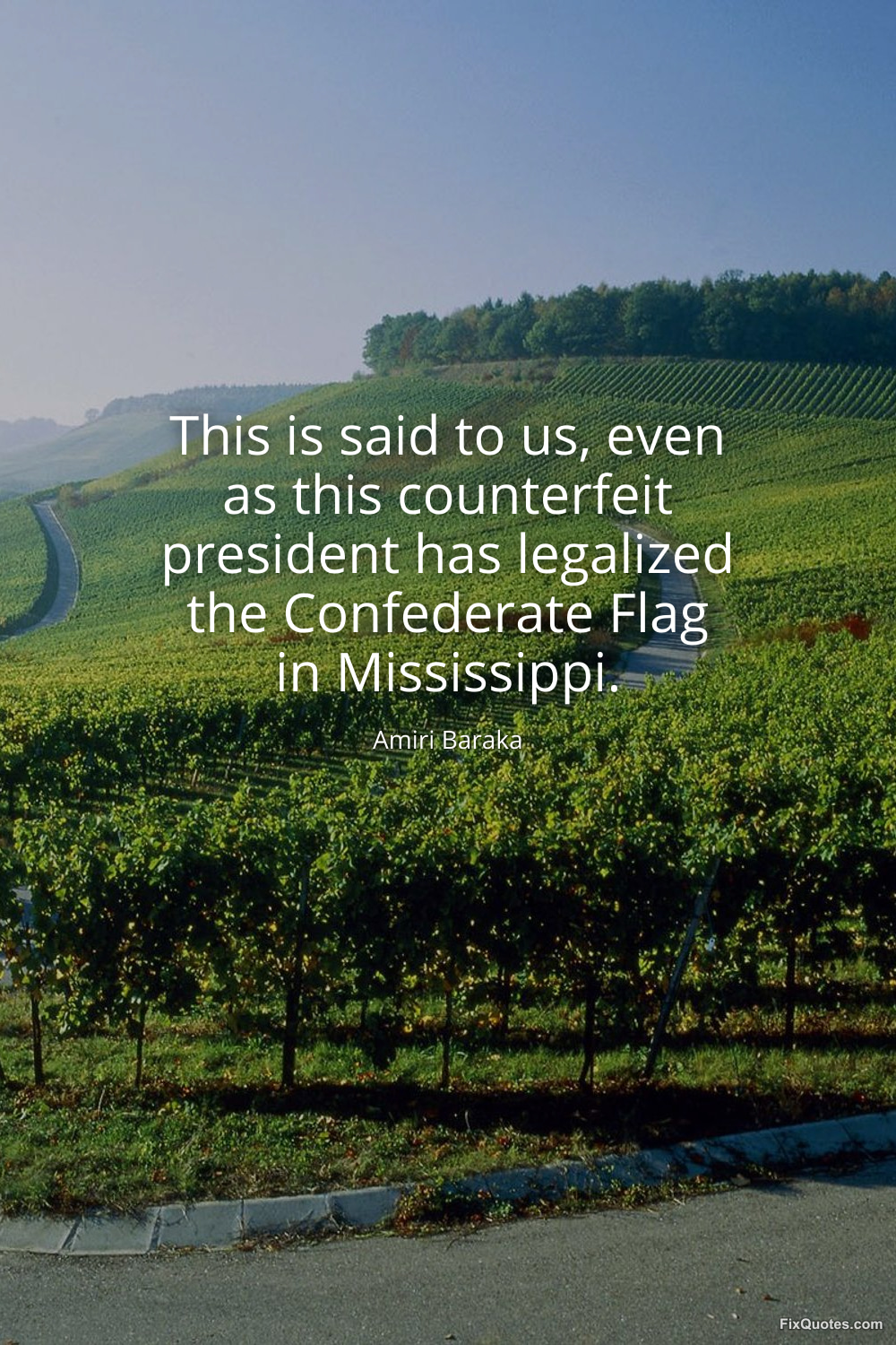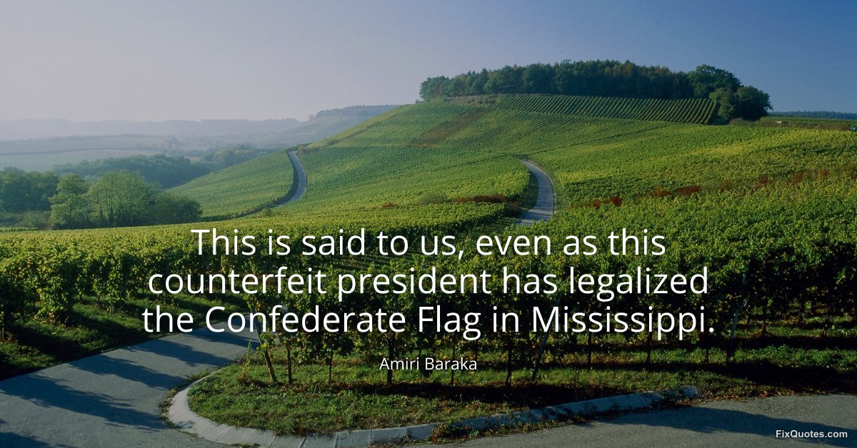 Baraka, Amiri. (2026, January 15). This is said to us, even as this counterfeit president has legalized the Confederate Flag in Mississippi. FixQuotes. https://fixquotes.com/quotes/this-is-said-to-us-even-as-this-counterfeit-149451/