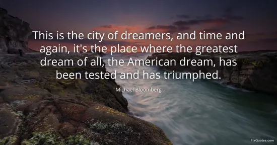 Bloomberg, Michael. "This is the city of dreamers, and time and again, it's the place where the greatest dream of all, the American dream, has been tested and has triumphed." FixQuotes. February 16, 2026. https://fixquotes.com/quotes/this-is-the-city-of-dreamers-and-time-and-again-88308/.