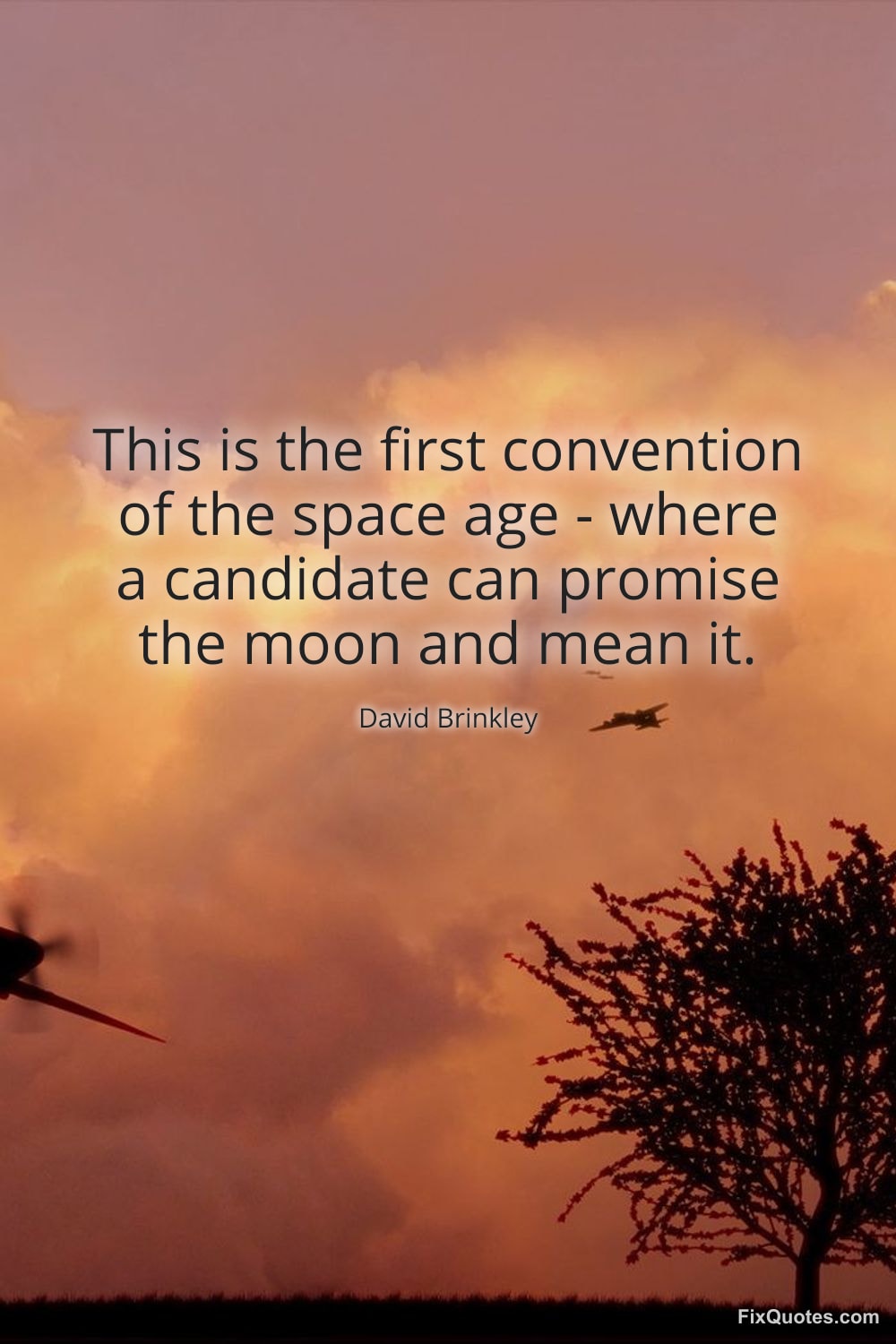 Brinkley, David. "This is the first convention of the space age - where a candidate can promise the moon and mean it." FixQuotes. January 17, 2026. https://fixquotes.com/quotes/this-is-the-first-convention-of-the-space-age-44031/.