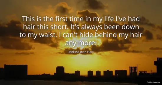 Hart, Melissa Joan. (2026, January 17). This is the first time in my life I've had hair this short. It's always been down to my waist. I can't hide behind my hair any more. FixQuotes. https://fixquotes.com/quotes/this-is-the-first-time-in-my-life-ive-had-hair-56803/