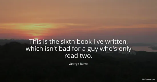 Burns, George. "This is the sixth book I've written, which isn't bad for a guy who's only read two." FixQuotes. January 17, 2026. https://fixquotes.com/quotes/this-is-the-sixth-book-ive-written-which-isnt-bad-35033/.