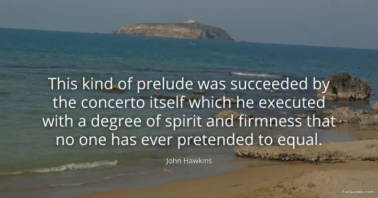 Hawkins, John. "This kind of prelude was succeeded by the concerto itself which he executed with a degree of spirit and firmness that no one has ever pretended to equal." FixQuotes. January 18, 2026. https://fixquotes.com/quotes/this-kind-of-prelude-was-succeeded-by-the-6354/.