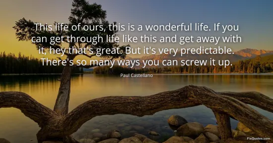 Castellano, Paul. (2026, January 13). This life of ours, this is a wonderful life. If you can get through life like this and get away with it, hey that's great. But it's very predictable. There's so many ways you can screw it up. FixQuotes. https://fixquotes.com/quotes/this-life-of-ours-this-is-a-wonderful-life-if-you-122290/