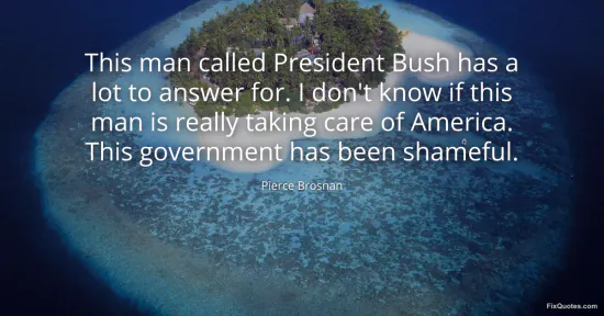 Brosnan, Pierce. "This man called President Bush has a lot to answer for. I don't know if this man is really taking care of America. This government has been shameful." FixQuotes. January 17, 2026. https://fixquotes.com/quotes/this-man-called-president-bush-has-a-lot-to-65078/.