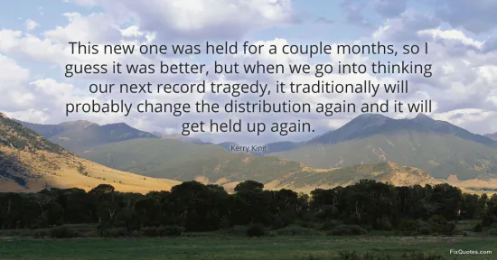 King, Kerry. "This new one was held for a couple months, so I guess it was better, but when we go into thinking our next record tragedy, it traditionally will probably change the distribution again and it will get held up again." FixQuotes. January 15, 2026. https://fixquotes.com/quotes/this-new-one-was-held-for-a-couple-months-so-i-149104/.
