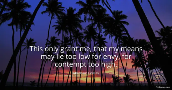 Cowley, Abraham. "This only grant me, that my means may lie too low for envy, for contempt too high." FixQuotes. January 16, 2026. https://fixquotes.com/quotes/this-only-grant-me-that-my-means-may-lie-too-low-122239/.