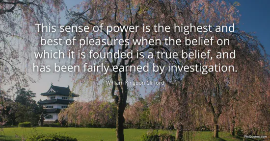 Clifford, William Kingdon. "This sense of power is the highest and best of pleasures when the belief on which it is founded is a true belief, and has been fairly earned by investigation." FixQuotes. January 15, 2026. https://fixquotes.com/quotes/this-sense-of-power-is-the-highest-and-best-of-19586/.