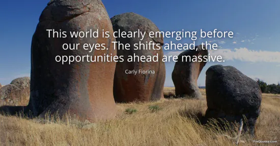 Fiorina, Carly. (2026, January 17). This world is clearly emerging before our eyes. The shifts ahead, the opportunities ahead are massive. FixQuotes. https://fixquotes.com/quotes/this-world-is-clearly-emerging-before-our-eyes-77381/