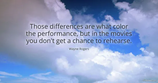 Rogers, Wayne. (2026, January 16). Those differences are what color the performance, but in the movies you don't get a chance to rehearse. FixQuotes. https://fixquotes.com/quotes/those-differences-are-what-color-the-performance-99885/