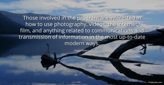 Owens, Major. (2026, January 15). Those involved in the program are interested in how to use photography, videos, the Internet, film, and anything related to communications and transmission of information in the most up-to-date modern ways. FixQuotes. https://fixquotes.com/quotes/those-involved-in-the-program-are-interested-in-158234/