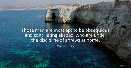 Irving, Washington. (2026, January 18). Those men are most apt to be obsequious and conciliating abroad, who are under the discipline of shrews at home. FixQuotes. https://fixquotes.com/quotes/those-men-are-most-apt-to-be-obsequious-and-10757/
