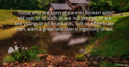 Willis, Thomas. (2026, January 15). Those who are born of parents broken with old age, or of such as are not yet ripe or are too young, or of drunkards, soft or effeminate men, want a great and liberal ingenuity or wit. FixQuotes. https://fixquotes.com/quotes/those-who-are-born-of-parents-broken-with-old-age-157490/