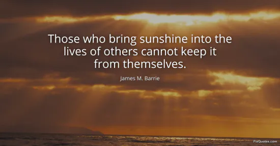 Barrie, James M. (2026, January 14). Those who bring sunshine into the lives of others cannot keep it from themselves. FixQuotes. https://fixquotes.com/quotes/those-who-bring-sunshine-into-the-lives-of-others-12608/