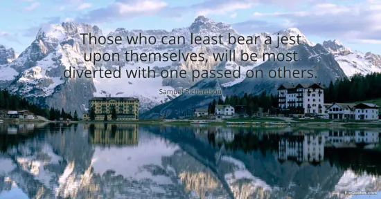 Richardson, Samuel. "Those who can least bear a jest upon themselves, will be most diverted with one passed on others." FixQuotes. January 18, 2026. https://fixquotes.com/quotes/those-who-can-least-bear-a-jest-upon-themselves-11473/.